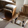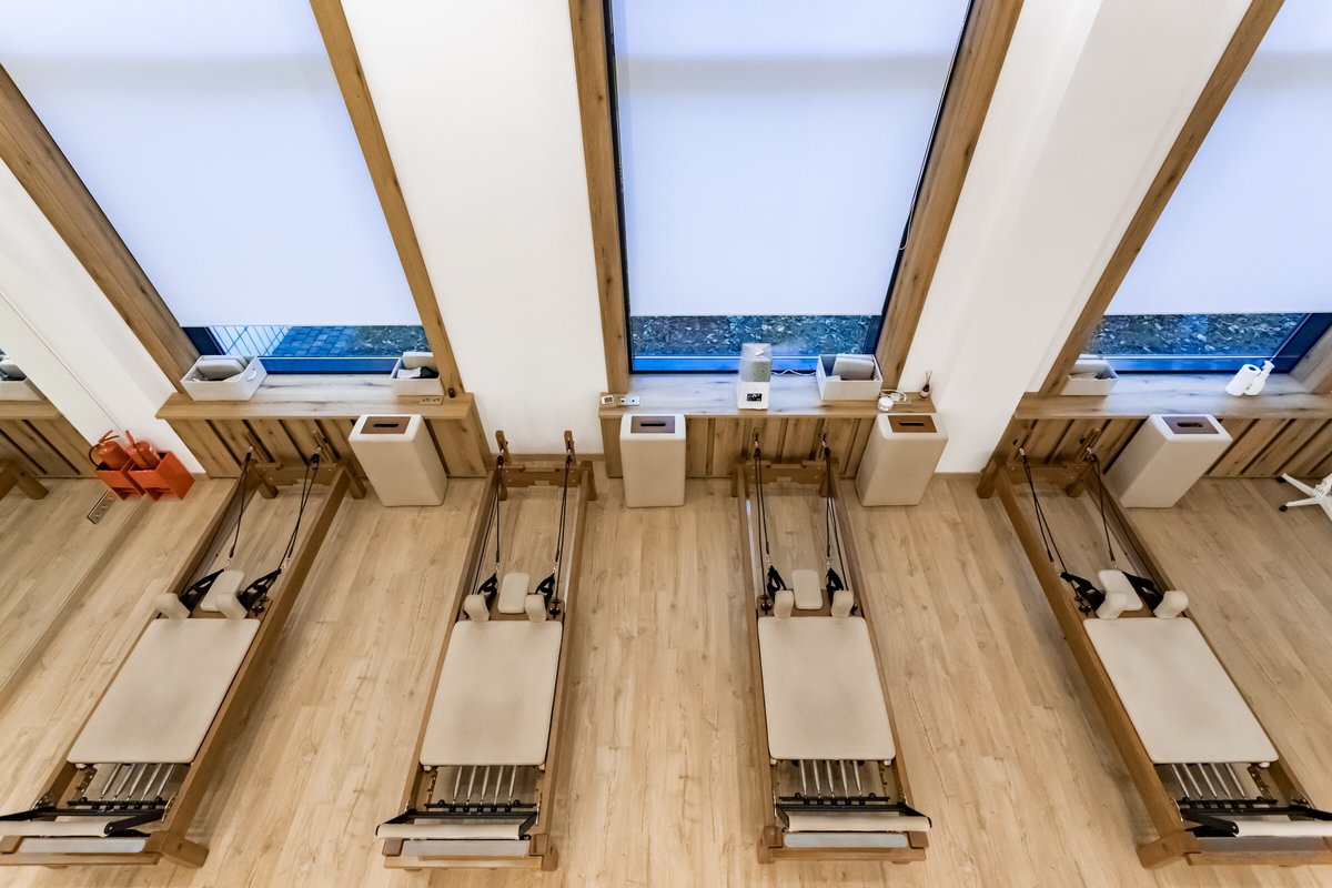 Мы предоставляем уникальную возможность заниматься пилатесом на специальном тренажере - реформере. Казалось бы, одно и то же упражнение, но тренировка на реформере создаёт дополнительное сопротивление и повышает эффективность работы мышц кора по сравнению с выполнением этого же упражнения на мате.